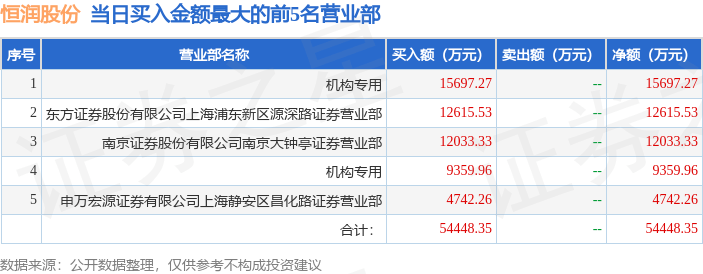 沪深交易所2023年10月31日公布的交易公开信息显示,恒润股份(603985)因有价格涨跌幅限制的日收盘价格跌幅偏离值达到7%的前五只证券登上龙虎榜。此次是近5个交易日内第2次上榜。