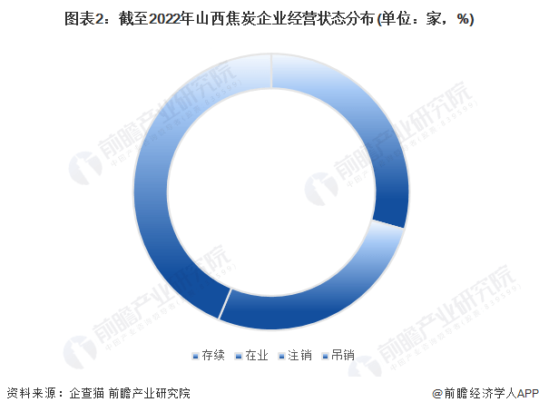 根据中国企业数据库企查猫,目前山西焦炭行业的存续企业143家,占总企业数的29%;吊销企业数占比为44%;注销企业数量占总企业数的27%。