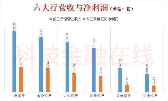 前三季度工商银行营业收入6512.68亿,建行5884.4亿,农业银行5333.58亿,中国银行4706.26亿,邮储银行2601.22亿,交通银行1988.89亿。