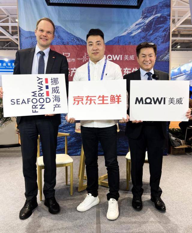 10月25日,在第26届中国(青岛)国际渔业博览会现场,京东生鲜联合挪威海产局、全球三文鱼头部供应商美威举办授权认证仪式。