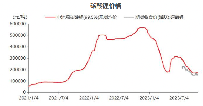 回溯来看,年初锂价延续去年11月以来的下跌趋势,碳酸锂快速跌至最低18万元/吨左右,后又快速反弹至近30万元/吨左右。只不过反弹昙花一现,三季度再次大跌。上海钢联数据显示,10月31日,电池级碳酸锂再下跌1000元/吨,均价报17.20万元/吨。