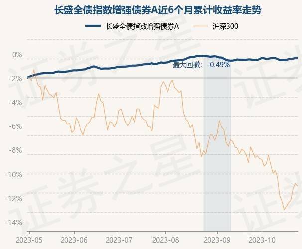 证券之星消息,10月31日,长盛全债指数增强债券A最新单位净值为1.5496元,累计净值为2.9051元,较前一交易日上涨0.02%。历史数据显示该基金近1个月上涨0.1%,近3个月上涨0.49%,近6个月上涨2.04%,近1年上涨3.34%。该基金近6个月的累计收益率走势如下图: