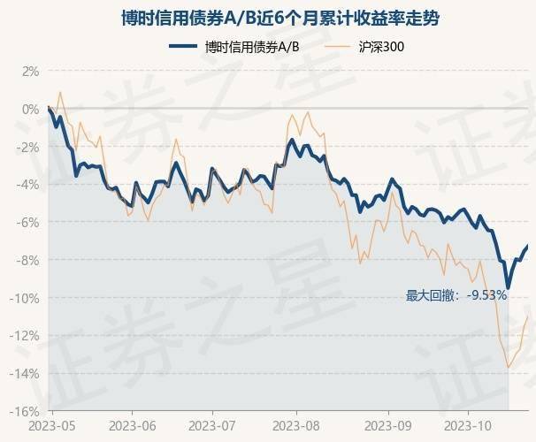 证券之星消息,10月31日,博时信用债券A/B最新单位净值为2.885元,累计净值为3.0元,较前一交易日下跌0.62%。历史数据显示该基金近1个月下跌2.09%,近3个月下跌5.75%,近6个月下跌7.34%,近1年上涨0.28%。该基金近6个月的累计收益率走势如下图: