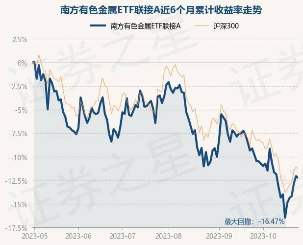 证券之星消息,10月31日,南方有色金属ETF联接A最新单位净值为0.9899元,累计净值为0.9899元,较前一交易日下跌0.22%。历史数据显示该基金近1个月下跌1.45%,近3个月下跌9.87%,近6个月下跌11.99%,近1年下跌6.44%。该基金近6个月的累计收益率走势如下图: