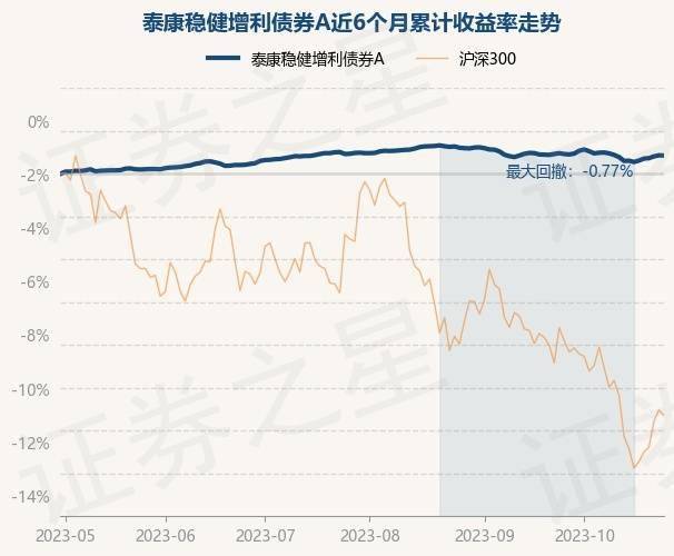 证券之星消息,10月31日,泰康稳健增利债券A最新单位净值为1.3556元,累计净值为1.3556元,较前一交易日下跌0.01%。历史数据显示该基金近1个月下跌0.21%,近3个月下跌0.07%,近6个月上涨0.89%,近1年上涨2.17%。该基金近6个月的累计收益率走势如下图: