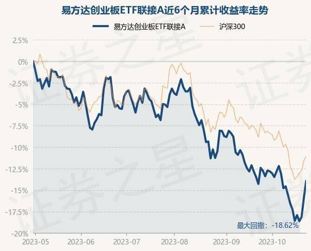 证券之星消息,10月31日,易方达创业板ETF联接A最新单位净值为2.0225元,累计净值为2.0225元,较前一交易日下跌0.45%。历史数据显示该基金近1个月下跌1.28%,近3个月下跌11.07%,近6个月下跌13.91%,近1年下跌11.91%。该基金近6个月的累计收益率走势如下图: