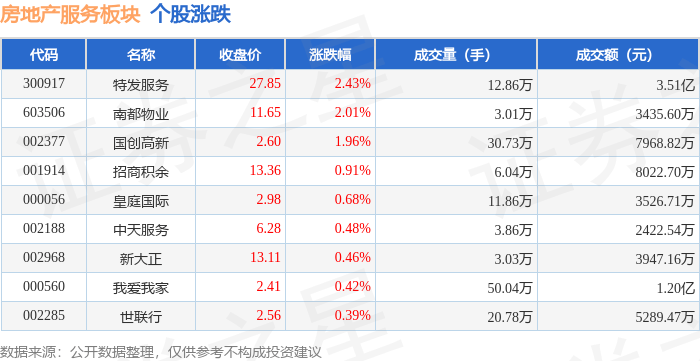 证券之星消息,10月31日房地产服务板块较上一交易日上涨0.92%,特发服务领涨。当日上证指数报收于3018.77,下跌0.09%。深证成指报收于9863.8,下跌0.65%。房地产服务板块个股涨跌见下表: