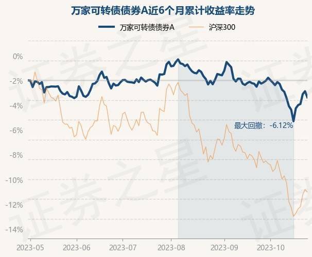 证券之星消息,10月31日,万家可转债债券A最新单位净值为1.1843元,累计净值为1.1843元,较前一交易日下跌0.63%。历史数据显示该基金近1个月下跌1.35%,近3个月下跌2.88%,近6个月下跌1.06%,近1年上涨0.91%。该基金近6个月的累计收益率走势如下图: