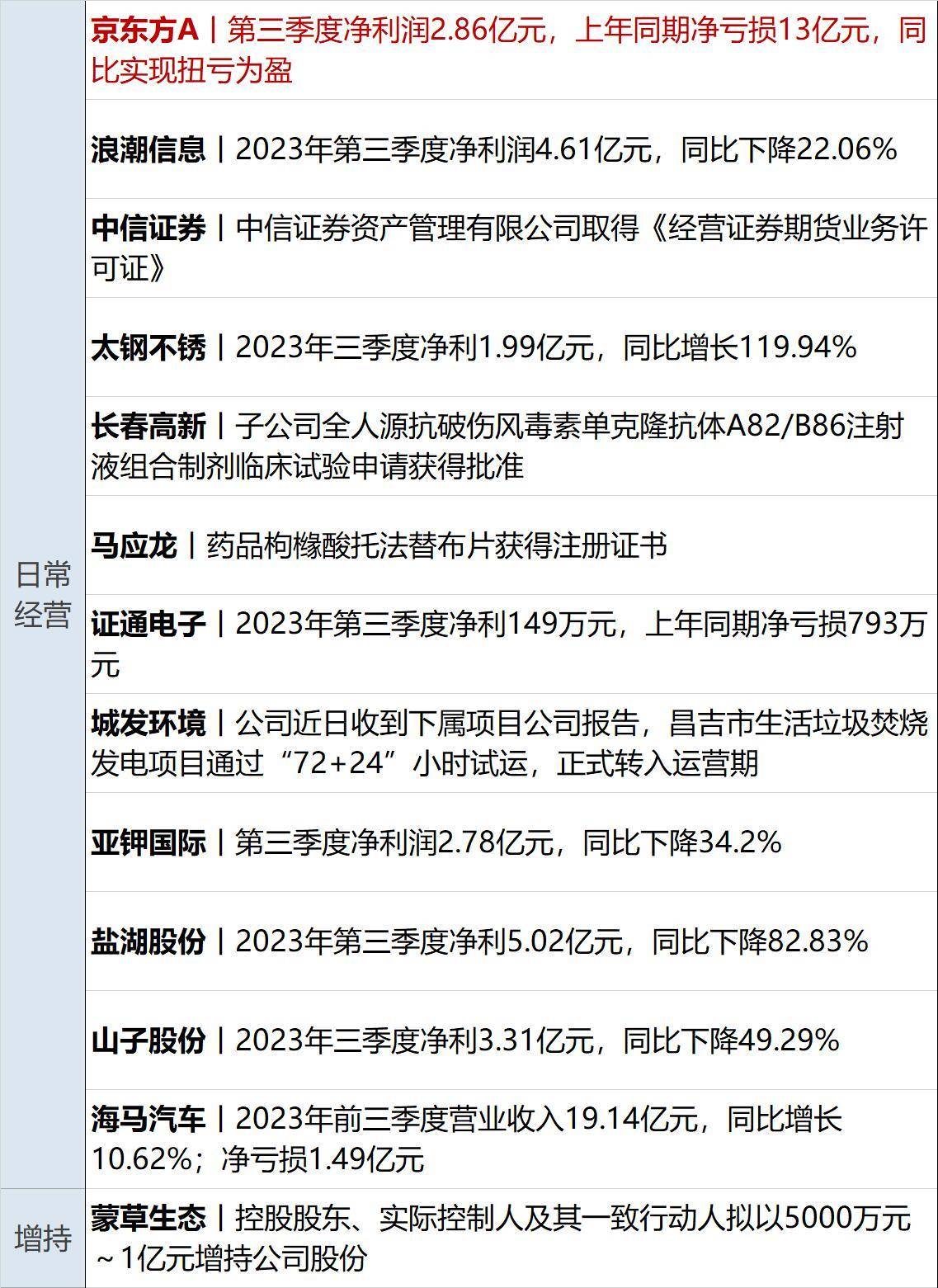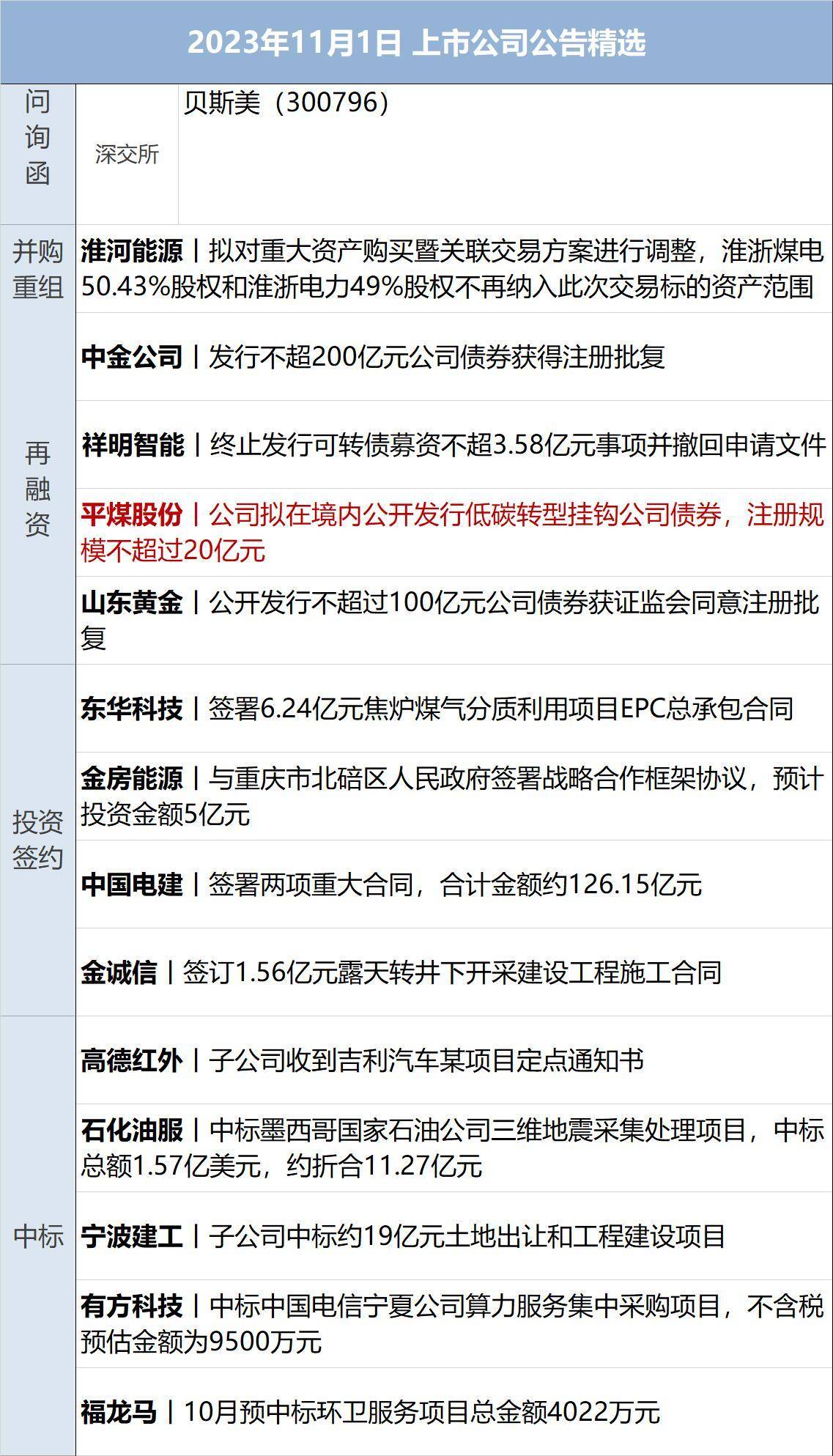 NO.2 贵州茅台(SH600519,股价1684.58元,市值2.12万亿元):10月31日晚,贵州茅台发布公告称,经研究决定,自2023年11月1日起上调本公司53%vol贵州茅台酒(飞天、五星)出厂价格,平均上调幅度约为20%。此次调整不涉及本公司产品的市场指导价格。