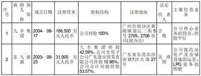 因业务发展需要,九丰集团、九丰天然气合计向大华银行(中国)有限公司广州分行(以下简称“大华广分”)申请综合授信及相关业务额度美元9,000.00万元,碳氢能源向United Overseas Bank Limited(大华银行有限公司,以下简称“大华银行”)申请综合授信额度美元6,000.00万元,且大华广分与大华银行两者合计授信总额度不超过美元9,000.00万元。东九能源、九丰天然气分别向广发银行股份有限公司广州分行(以下简称“广发广分”)申请综合授信额度人民币20,000.00万元、人民币60,000.00万元。