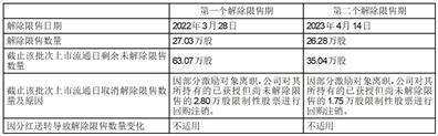 (三)2020年股票期权与限制性股票激励计划历次限制性股票解除限售情况
