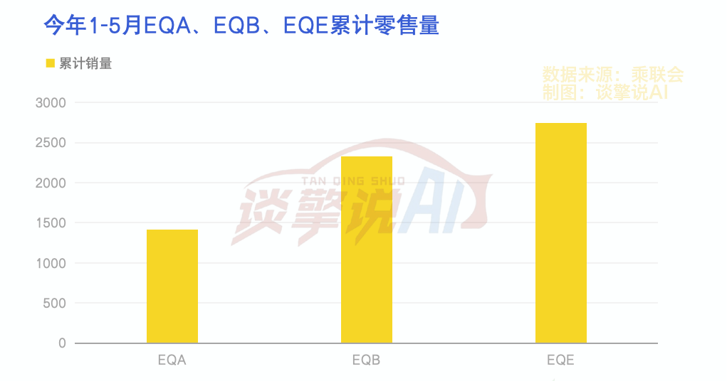 乘联会数据显示,去年全年,奔驰EQ系列纯电动车累计销量仅有1.48万,今年1-5月,EQA、EQB、EQE累计零售量分别为1415辆、2324辆、2742辆。今年3月份,奔驰EQC甚至只卖出了68辆。