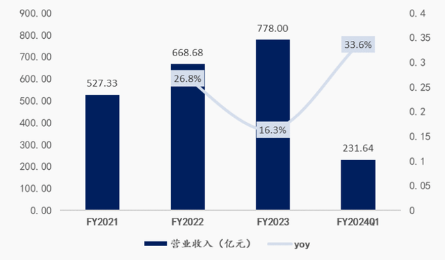 观察近几年菜鸟的财务表现,会发现其营业收入呈现出持续增长态势:2023年财年公司实现营收778亿元,近三年的复合增长率达21%。