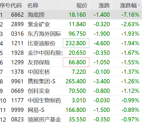 港股市场早间开盘微红:恒生指数涨0.16%,恒生科技涨0.08%,恒生国企涨0.16%。截至发稿恒指飘绿。海底捞大跌7%,领跌恒指。