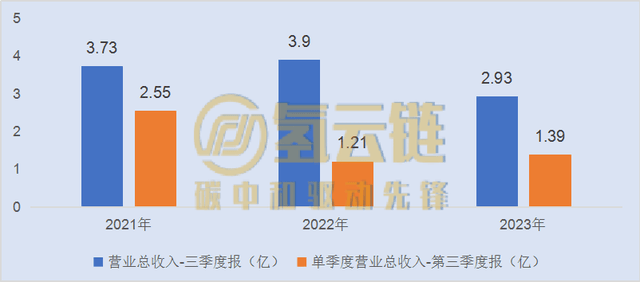 亿华通10月30日晚间发布2023年第三季度报告。根据季报,亿华通在第三季度营收达到1.4亿元,同比上升15.13%,扭转了前两季度营收持续下滑的趋势,为当下颇为黯淡的燃料电池市场投下了一抹亮色。