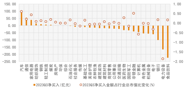 三季度北向资金净买入金额居前的行业为汽车、通信、家用电器与纺织服饰,除通信外,其余行业均属于大消费风格,均属于陆股通近年来重仓板块。