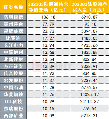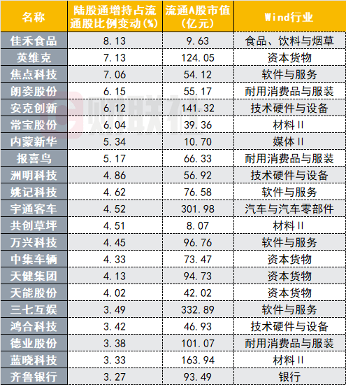 三季报显示,以下标的Q3获陆股通增资比例居前。