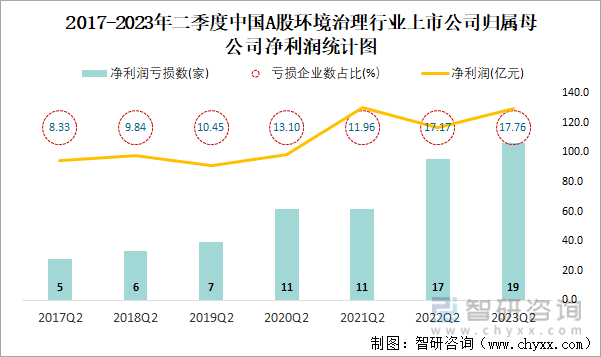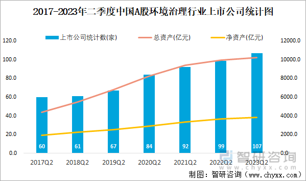 2017-2023年二季度中国A股环境治理行业上市公司统计图
