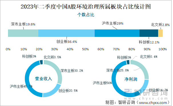 2023年二季度中国A股环境治理所属板块占比统计图