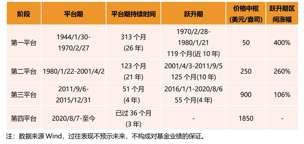 过去100年来金价中枢稳步上行,呈现“平台-跃升”交替走势。近年来金价平台震荡时间越来越短,最近一次平台期已经超过3年,历史上三次跃升期每次涨幅都超过100%,而今年年初至10月27日伦敦金现仅上涨10%。历史上通胀大幅上行是黄金价格上行的领先指标,而这一次美国的通胀达到了过去二十年的最高水平。