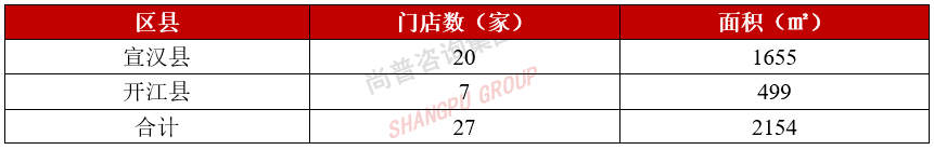 四川一心堂拟收购的宣汉药房直营门店27个,门店分布于成都达州市宣汉县、开江县境内各区、县,店均面积约为80平方米。具体如下: