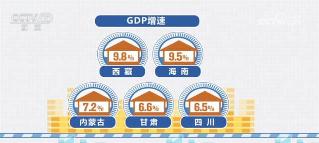 从各省的地区生产总值增速看,17个省份地区生产总值增速快于全国5.2%的增速,四川、湖北、重庆等11省份地区生产总值增速快于各自上半年增速,浙江、辽宁、上海等12个省份的经济增速快于各省年初制定的全年目标。其中,西藏、海南、内蒙古、甘肃及四川等5个省份的地区生产总值增速领跑全国,均达到6.5%以上。