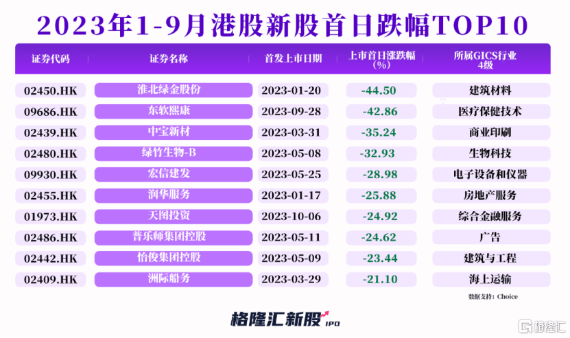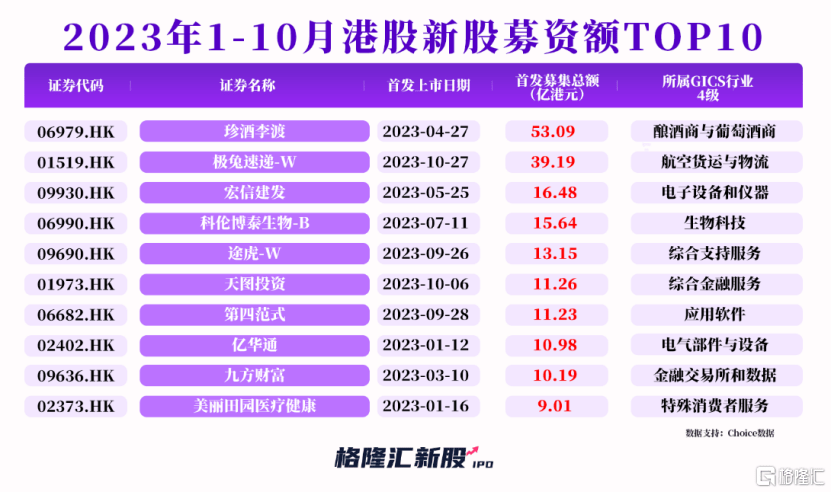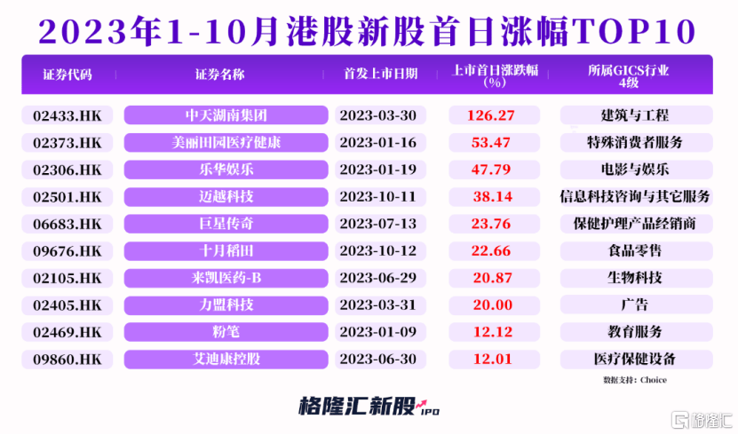 从涨幅来看,迈越科技、十月稻田分别在上市首日涨超38%、22%,进入2023年1-10月港股新股首日涨幅榜前10名,而首日跌幅榜大部分还是那些老面孔。
