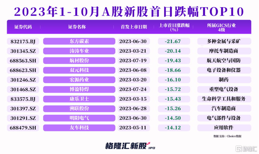 值得注意的是,浩辰软件也是10月上市新股中首日跌幅最大的公司,首日跌超14%,但仍未进入2023年1-10月新股首日跌幅前十。