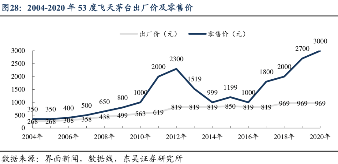 再往前追溯五年,2012年9月1日,茅台宣布适当上调部分产品出厂价格,其中贵州茅台酒出厂价提升至819元/瓶。