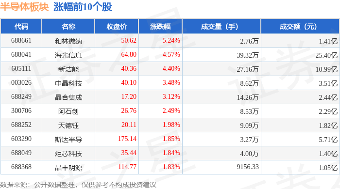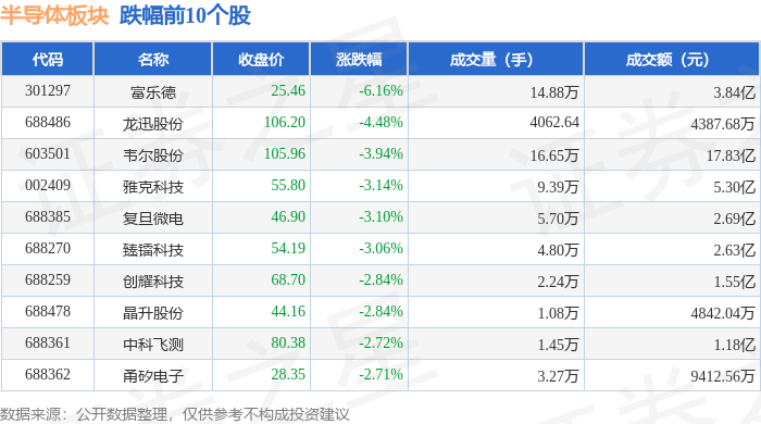 北向资金方面,当日半导体板块北向资金持股市值为605.91亿元,减持3.79亿元。其中增持最多的是卓胜微,增持了1.59亿元。减持持最多的是韦尔股份,减持了2.03亿元。半导体板块北向资金持股变动明细见下表:
