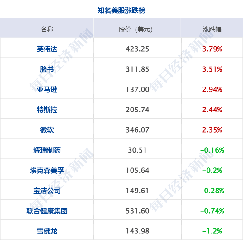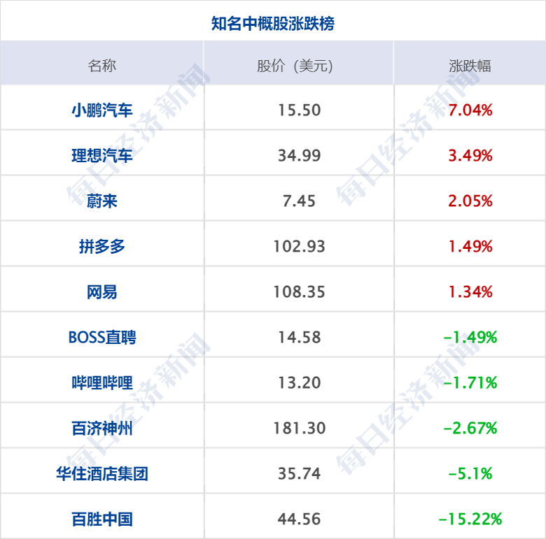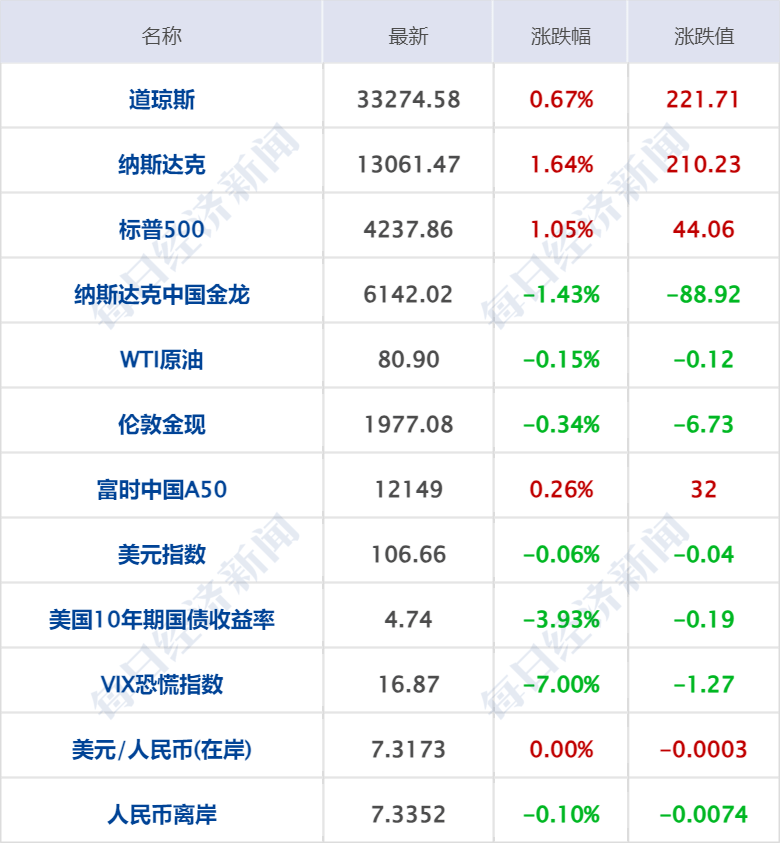 美联储将联邦基金利率维持在5.25%至5.5%不变。美股三大指数集体收涨,纳指涨1.64%,标普500指数涨1.05%,道指涨0.67%。大型科技股走高,脸书涨超3%,微软、亚马逊、奈飞涨超2%,苹果、谷歌涨超1%。AMD涨近10%,WeWork大跌约47%,消息称WeWork计划最早于下周在美国新泽西州申请破产保护。中概股涨跌参半,纳斯达克中国金龙指数跌1.43%。小鹏汽车涨近7%,理想汽车涨超3%,蔚来涨近2%,京东、阿里巴巴、百度小幅下跌。