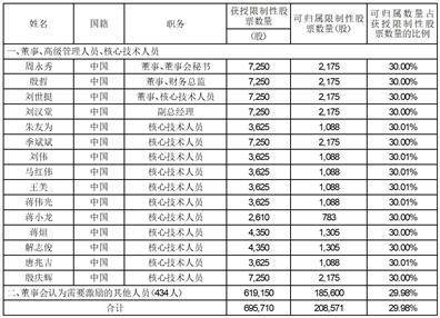 注1、上述任何一名激励对象通过全部有效期内的股权激励计划获授的本公司股票均未超过公司股本总额的1.00%。公司全部有效期内股权激励计划所涉及的标的股票总数累计不超过股权激励计划提交股东大会审议时公司股本总额的20.00%。