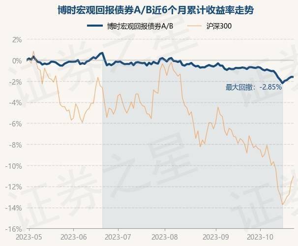 证券之星消息,11月1日,博时宏观回报债券A/B最新单位净值为1.3892元,累计净值为1.5572元,较前一交易日下跌0.12%。历史数据显示该基金近1个月下跌1.12%,近3个月下跌1.83%,近6个月下跌1.8%,近1年下跌1.1%。该基金近6个月的累计收益率走势如下图: