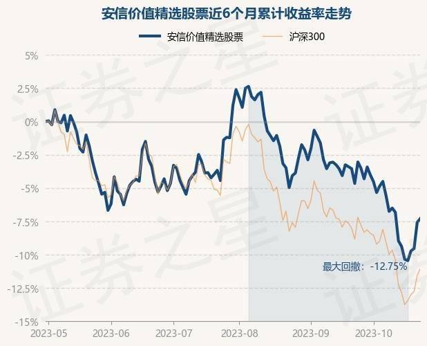 证券之星消息,11月1日,安信价值精选股票最新单位净值为3.7349元,累计净值为3.7349元,较前一交易日上涨0.0%。历史数据显示该基金近1个月下跌3.69%,近3个月下跌9.17%,近6个月下跌7.53%,近1年下跌2.74%。该基金近6个月的累计收益率走势如下图: