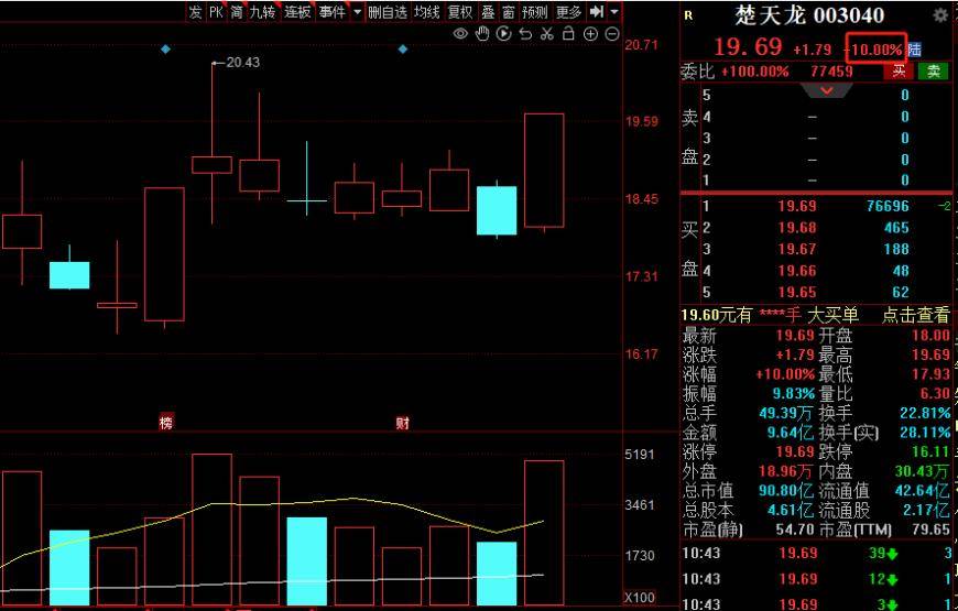 另一只盘中涨停的“天龙股”为通信设备行业的楚天龙,截止发稿,几经波折后,其股价维持封板态势。截至目前,其涨停板上封单近7万手,换手率超22%。