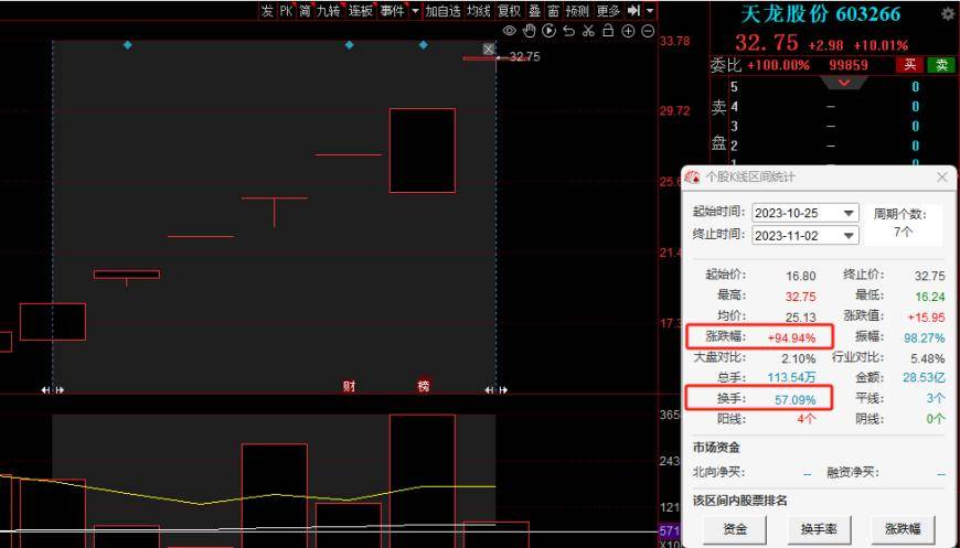 处于新能源汽车产业链的天龙股份今日再获涨停,且晋级7连板。连续涨停期间,该股累计上涨94.94%,累计换手率超57%。最新A股总市值达65.14亿元。天龙股份是精密制造领域领先的精密模具、注塑、冲压、装配一站式集成化方案提供商,公司产品用途主要涉及汽车零部件、电工电器两大领域。
