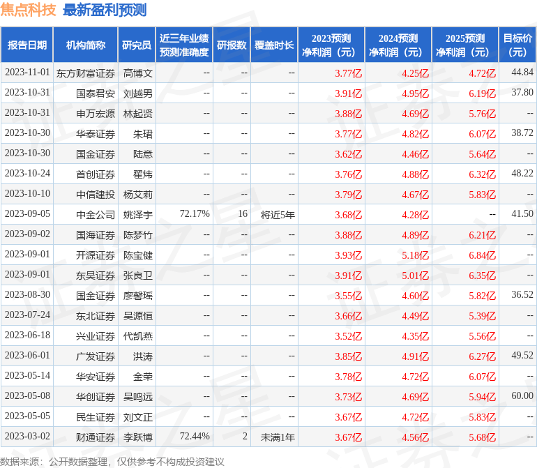以下是详细的盈利预测信息: