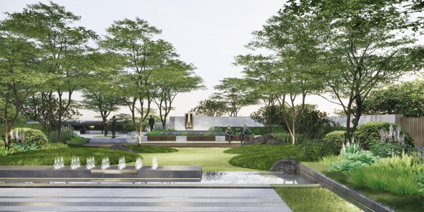 大面积玻璃幕墙+铝板线条+金属格栅,引领当代的典雅公建化外立面,高级大气的美学气质瞬间彰显,奢宅尊崇感十足!
