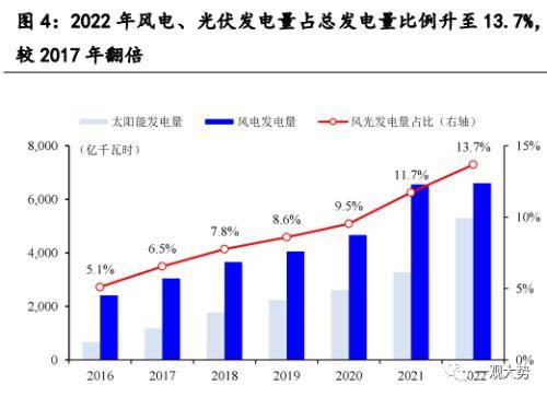 绿色低碳发展制度和政策体系下,有望进一步激发能源结构绿色化。在“双碳”政策愈发紧迫的环境下,新能源投资建设需求将呈现快速增长的势头。未来,预计将见到更多大型风光基地和大规模分布式新能源设备的兴建,逐步替代传统能源发电厂,推动整体能源结构由“以传统能源为主体”向“以新能源为主体”转型。对于辽阔地域而言,大规模新能源基地电量外送依然是提升电力系统可再生能源比例的关键方式。这一举措对电网的远距离传输和消纳能力提出了新的挑战,同时也对储能设备的配套建设和电力系统的智能化运营等方面提出更为迫切的需求。