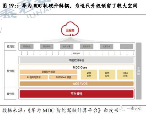 产品方面,华为MDC平台集成了智能驾驶操作系统AOS、智能车控系统VOS和MDCCore,为开发伙伴提供了低延迟和高安全性的底层开发平台。MDC平台不仅兼容汽车AUTOSAR,还提供完整的工具链,大大减轻了重复开发的工作负担。这使得客户和合作伙伴能够快速开发适用于各种场景的解决方案,包括乘用车、商用车、Robotaxi、矿山和码头等专用场景。MDC平台采用了软硬件解耦设计,其软件架构支持不同硬件配置,预计能够实现从L2+到L5的平滑演进,全面保护客户和生态合作伙伴在软件开发方面的历史投资。
