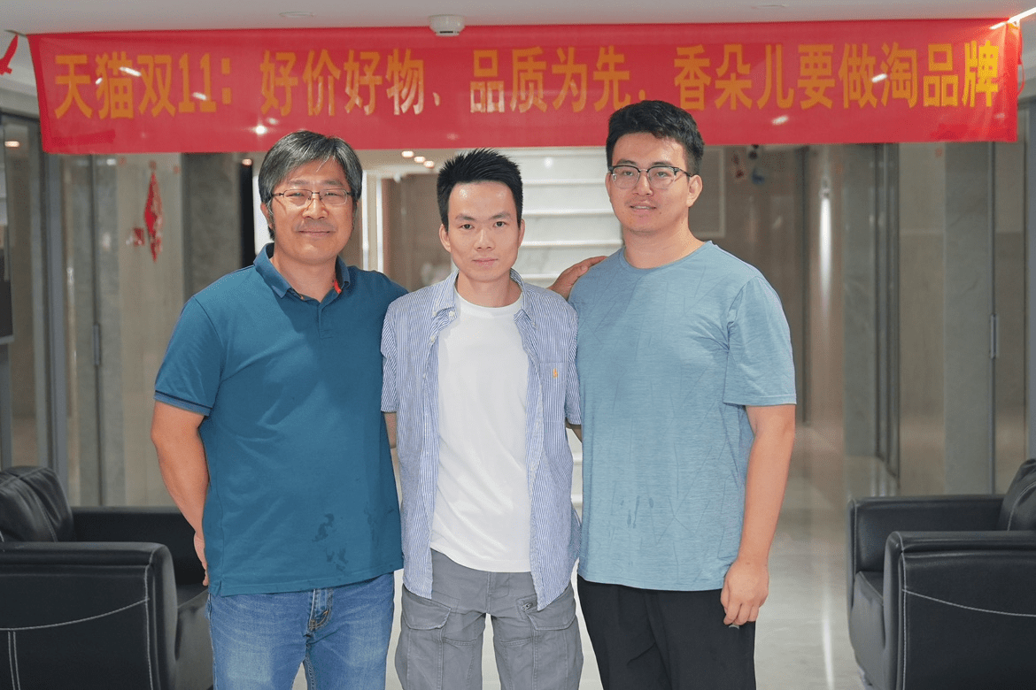 10月26日,南京大学教授罗震东(左一)带着学生,来到淘宝女装头部商家广州香朵儿服饰有限公司调研,与公司创始人赵晓忠合影