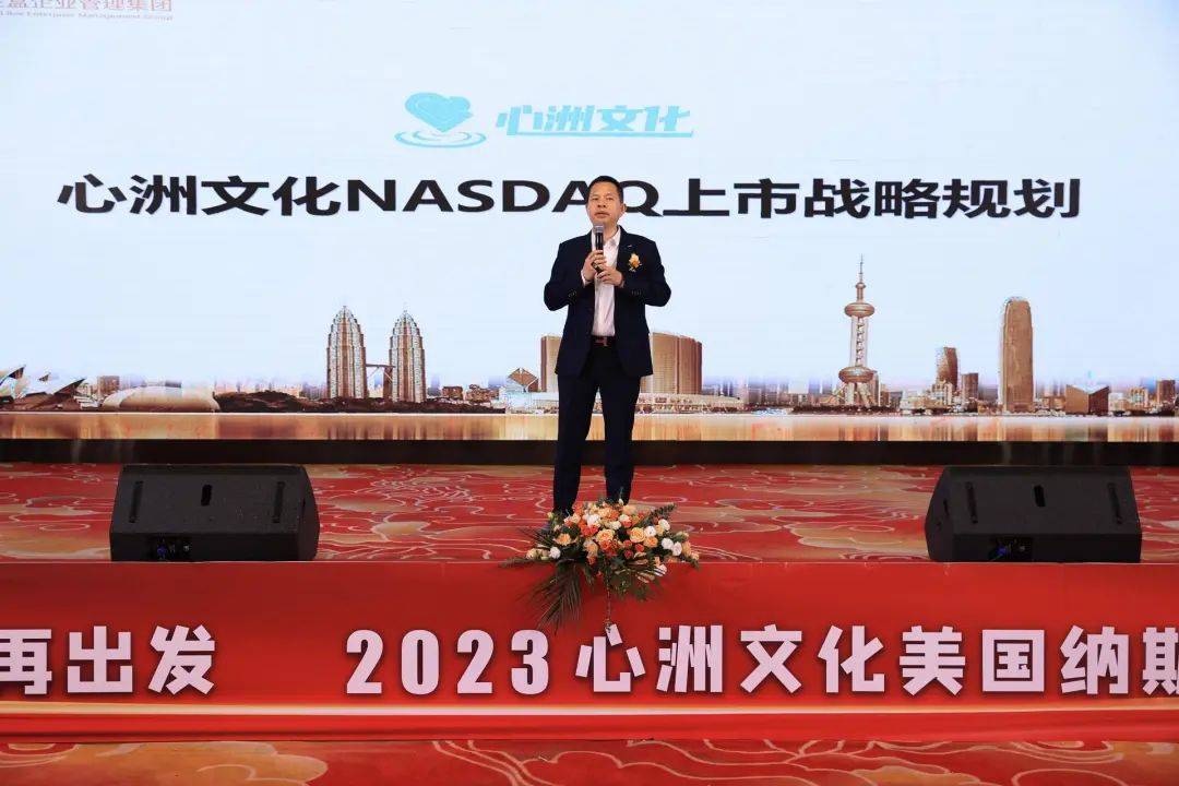 开新局。在现场与会观众的掌声中,心洲文化集团董事局主席张英雄教授携手上海金盒企业管理咨询(集团)董事长赵庆敏先生共同按下本次上市大会启动按钮,“心洲文化美国纳斯达克主板上市启动”正式开启!随后,金盒企业管理集团董事长赵庆敏先生就上市进程做了现场讲解,引发了千余参会人员的热情共鸣。