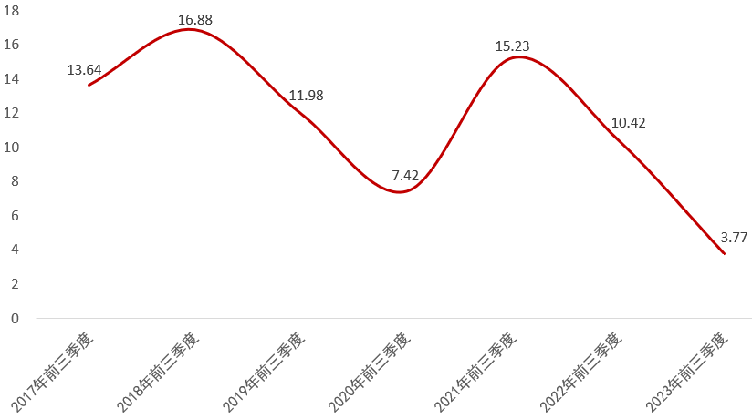 2017年前三季度至2023年前三季度伊利收入同比增长(单位:%);来源:伊利财报,阿尔法工场整理