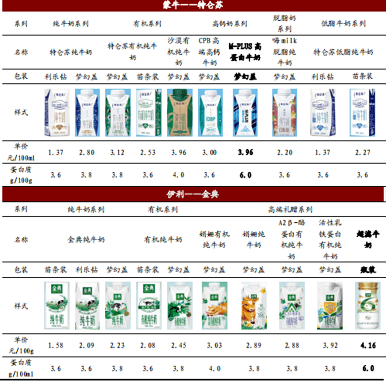 蒙牛特仑苏和伊利金典的高端产品差异化布局;来源:万联证券研究所