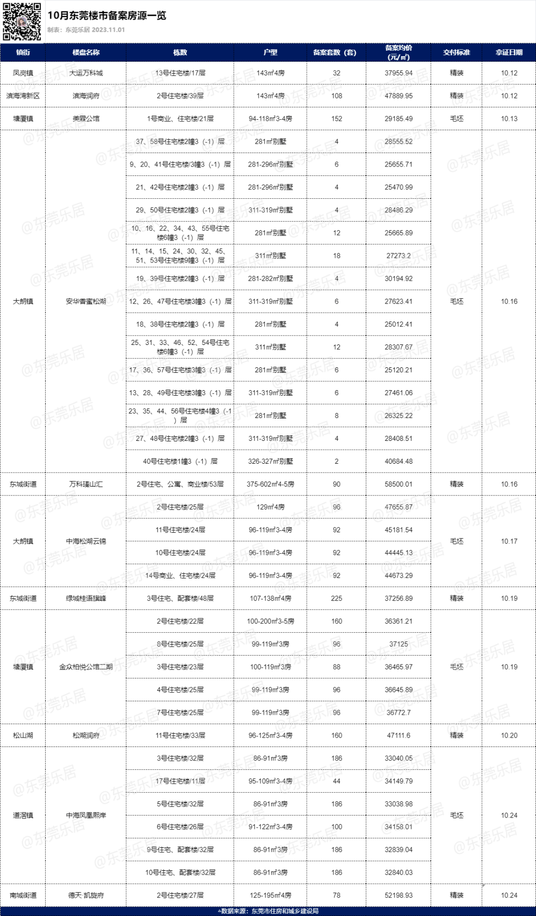 不过,经历了9月的入市高峰,10月的新增供应量还是呈现自然回落的态势。10月东莞新房供应量环比9月下跌55%,同比去年10月下跌32%。