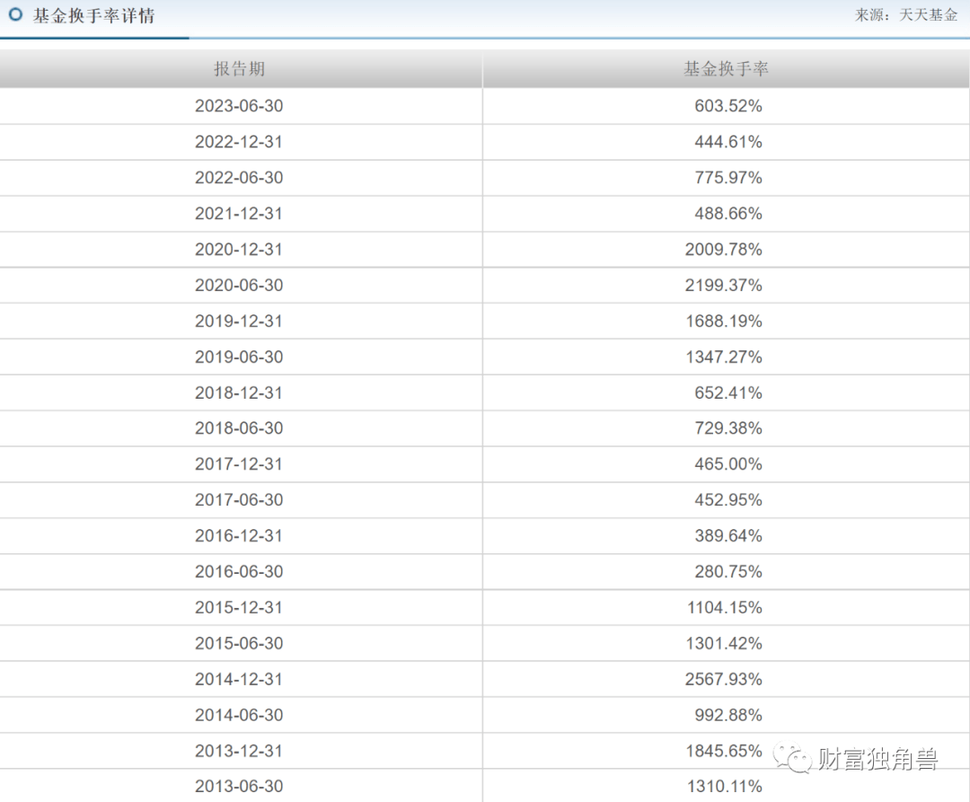 杨富麟旗下基金换手率曾高达2199%