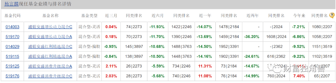 除了基金清盘的问题外,浦银安盛基金旗下其他的基金经理业绩也不理想。据天天基金网显示,杨富麟曾于2015年1月至10月在安信证券担任零售行业研究员,2015年10月至2020年6月在国海富兰克林基金公司从事消费行业研究。2020年7月加盟浦银安盛基金管理公司,任职行业研究员基金经理助理。