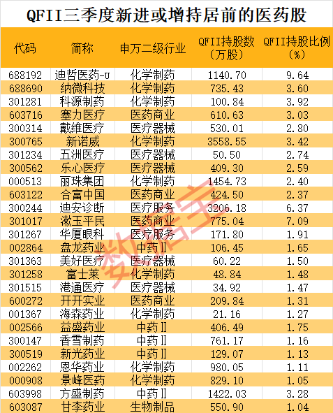 另外,QFII还新进增持了科源制药、塞力医疗、戴维医疗、新诺威、五洲医疗等24股,持股变动均超1%。QFII大手笔买入的医药股,多半为创新药企业。
