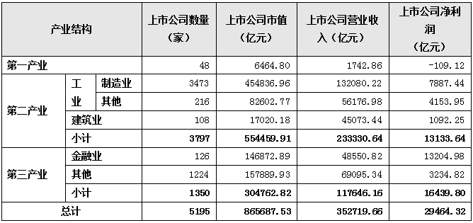 表 2 三大产业上市公司经营情况