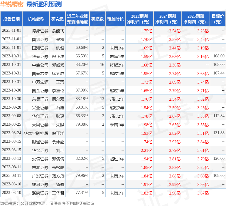 以下是详细的盈利预测信息: